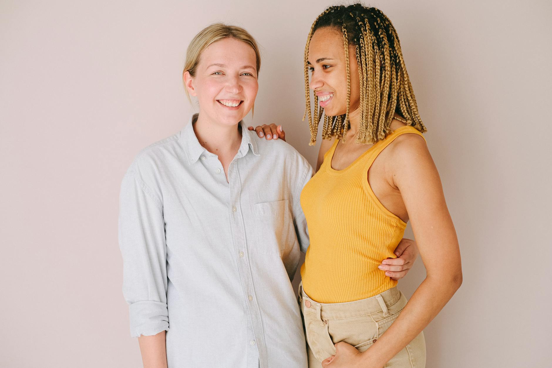 Close-up of an interracial couple holding hands, symbolizing unity and love.
